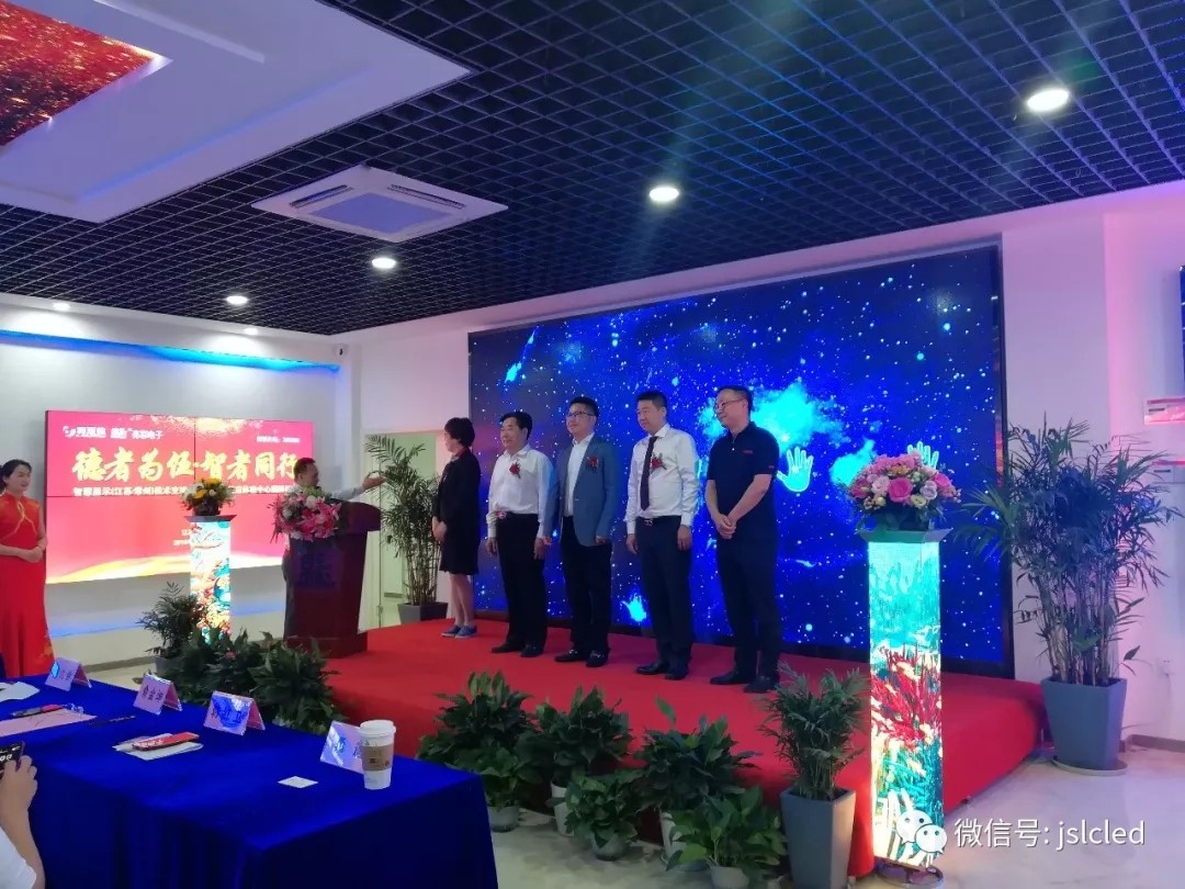 江蘇亮彩電子有限公司總經理章九余先生、利亞德渠道中心副總經理吳斌先生、今創集團(股票代碼603680)董事局主席俞金坤和常州市工商聯副主席韓紅衛女士共同上臺進行揭牌和授牌儀式。